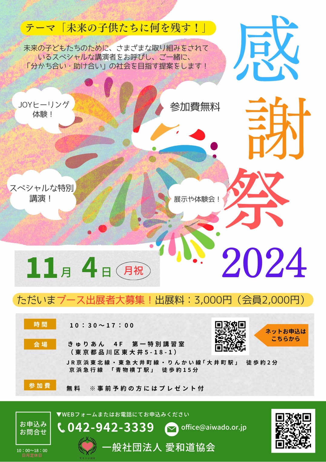 【令和6年11月4日(月・祝)一般社団法人 愛和道協会様 感謝祭】弊社代表取締役宮本隆の特別講演とブース出展のお知らせ