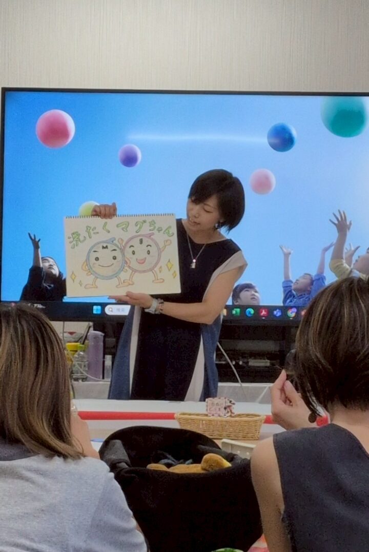また、『マグちゃんの会』の方が、弊社の洗たくマグちゃんに込める環境への想いをテーマに「地球のヒーロー」という紙芝居を作成してくださり、実際に読んでくださいました。